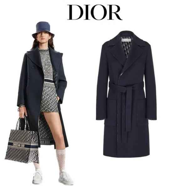 블루 컬러의 경량 양면 울소재로 타이 벨트가 웨이스트를 강조하고